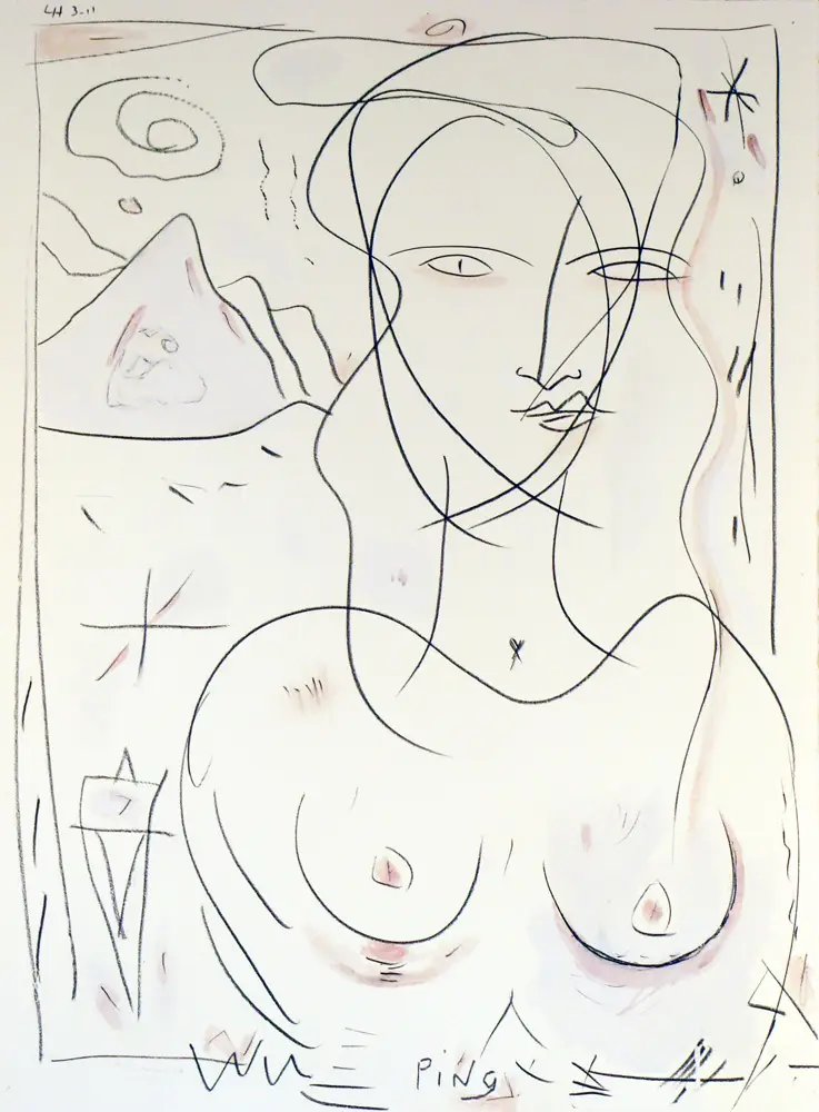 Drawings Back to The Works > An Angry Kathleen, 1976 pencil on paper 13.675 x 16.875 in Bartok, Unknown ink on Manila paper 18.5 x 24 in BaYaka’s Brother, 1970 ink on paper 20 x 26.5 in Crane & Dragonfly, 2011 ink, watercolor on paper 17 x 20 in Crying in the Wind, 2011 charcoal pencil on paper 18 x 24 in Emmasauer, 2011 charcoal pencil on paper 29.75 x 42.5 in Geisha of the House of Amaryllis, 2011 ink, watercolor on paper 17 x 20 in Is She Worth It, 2011 crayon, pencil on paper 18 x 24 in Nature Morteetvers, 1964 ink on paper 5.75 x 8.25 in No Name-Drawing of Woman, 2011 charcoal pencil on paper 12.5 x 30 in Nok Head, 1970 sepia ink on Manila paper 24 x 18 in Nude Woman with Exposed Ribs, 1964 pencil on paper 8.5 x 8.5 in Portrait, 1976 ink on paper 13.675 x 16.875 in Reclining Figure with Open Window, 1981 India ink on paper 25 x 16.5 Rock & Cloud, 2011 charcoal pencil on paper 18 x 20 in Standing Nude, 1964 pencil on paper 8.25 x 10.75 in Still Life, 1963 ink on paper 6 x 8 in Table, Sculpture & Mirror, 1963 pencil on paper 6.5 x 7 in Wu Ping, 2011 charcoal pencil, watercolor on paper 22.5 x 30.5 in Young Woman II, 1981 Conte crayon on Manila paper 18 x 24 in Young Woman, 1981 Conte crayon on Manila paper 17.5 x 23.5 in
